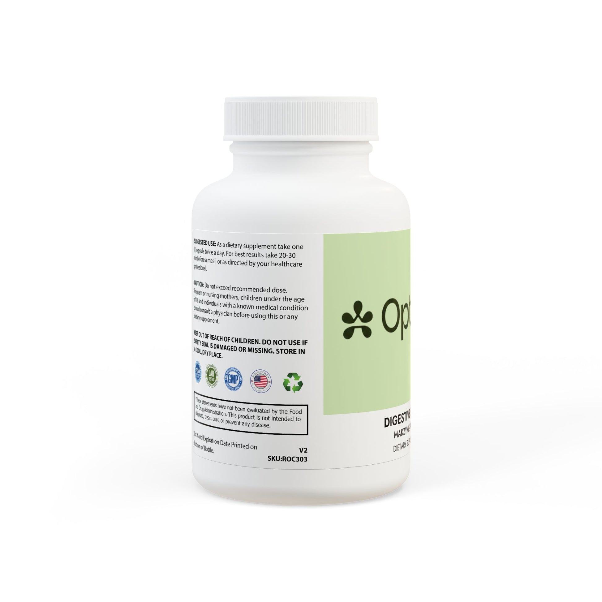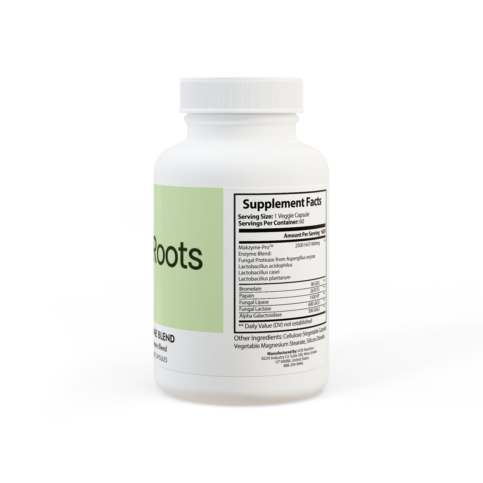 Ingredients: Makzyme-Pro™, Enzyme Blend: Fungal Protease from Aspergillus oryzae, Lactobacillus acidophilus, Lactobacillus casei, Lactobacillus plantarum, Bromelain, Papain, Fungal Lipase, Fungal Lactase, Alpha Galactosidase. Other Ingredients: Cellulose (Vegetable Capsule), Vegetable Magnesium Stearate, Silicon Dioxide.